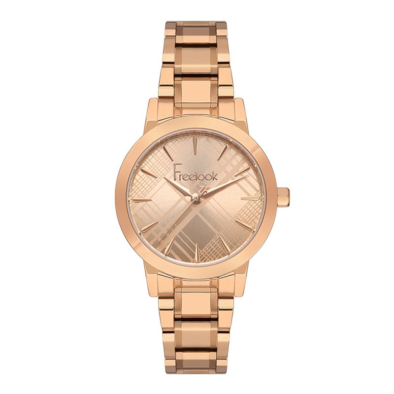 Дамски часовник Freelook с метален корпус и верижка от неръждаема стомана. Моделът е с аналогов дисплей и минерално стъкло. Задвижва се от кварцов механизъм. Водоустойчивост 5 ATM - допускат се леки пръски и взимане на душ, не се препоръчва обилно мокрене.