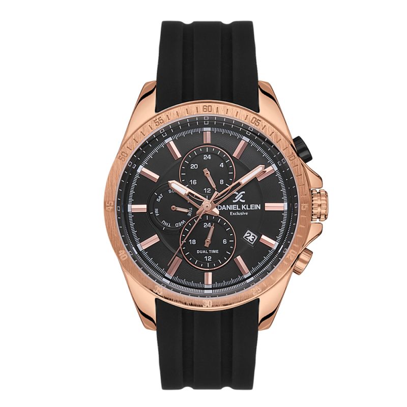 Мъжки часовник Daniel Klein с мултифункционален дисплей от колекцията Exclusive. Метален корпус в комбинация със силиконова каишка. Минерално стъкло устойчиво към надраскване. Моделът се задвижва от кварцов механизъм. Водоустойчивост 5 ATM - допускат се леки пръски и взимане на душ, не се препоръчва обилно мокрене.