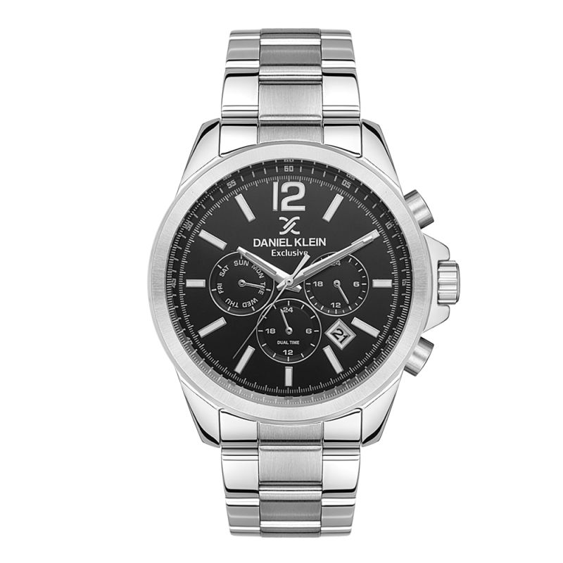 Мъжки часовник Daniel Klein с мултифункционален дисплей от колекцията Exclusive. Моделът е с метален корпус и верижка от неръждаема стомана. Минерално стъкло устойчиво към надраскване. Задвижва се от кварцов механизъм. Водоустойчивост 5 ATM - допускат се леки пръски и взимане на душ, не се препоръчва обилно мокрене.