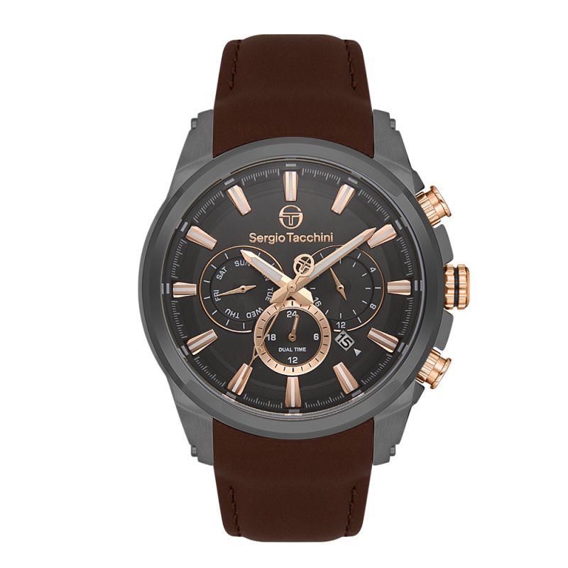Мъжки часовник SERGIO TACCHINI ST.1.10377-5 с каишка/верижка от Естествена кожа и Кварцов механизъм | Chronodeluxo.bg