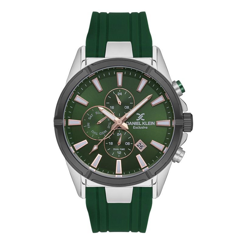 Мъжки часовник Daniel Klein с мултифункцинален дисплей от колекцията Exclusive. Моделът е с метален корпус и силиконова каишка. Минерално стъкло устойчиво към надраскване. Задвижва се от кварцов механизъм. Водоустойчивост 5 ATM - допускат се леки пръски и взимане на душ, не се препоръчва обилно мокрене.