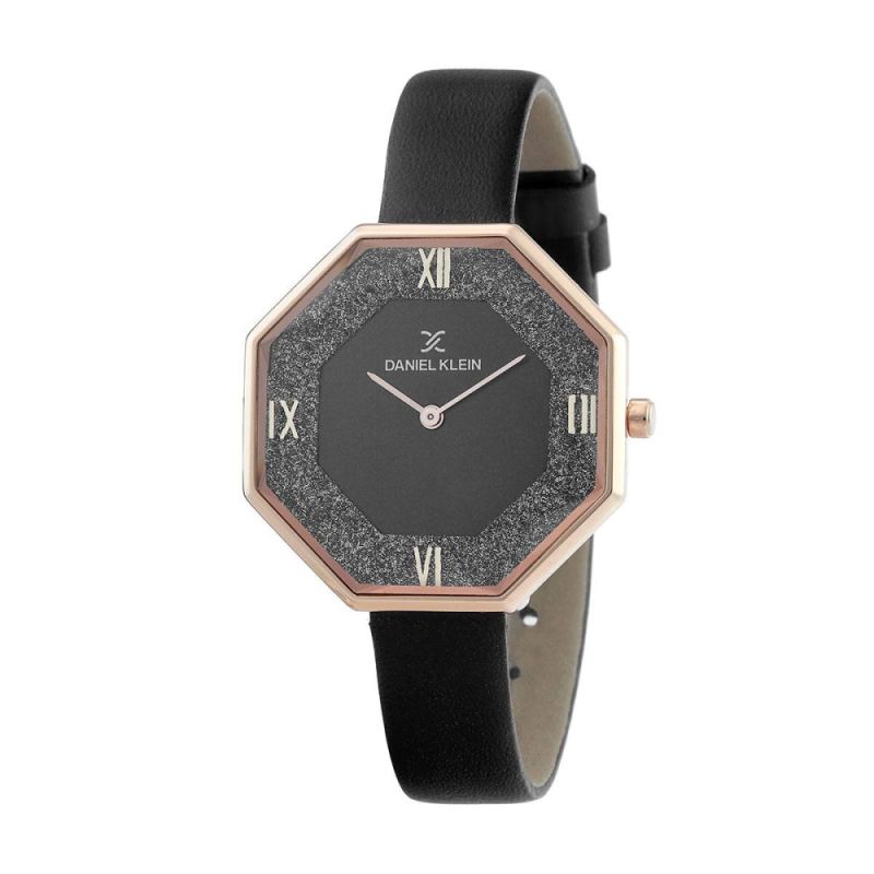 Дамски часовник Daniel Klein от колекцията Premium. Моделът е с аналогов дисплей с осмоъгълна форма и бляскава външна част. Стъкло минерал-кристал. Метален корпус, съчетан с кожена каишка. Задвижва се от кварцов механизъм. Водоустойчивост 3 ATM - допускат се леки пръски, не се препоръчва обилно мокрене.