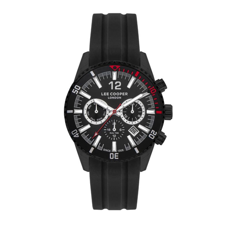 Мъжки часовник Lee Cooper със спортно-ежедневен дизайн. Моделът е с мултифункционален дисплей и минерално стъкло. Корпус от супер метал, съчетан със силиконова каишка. Задвижва се от кварцов механизъм. Водоустойчивост 5 ATM - допускат се леки пръски и взимане на душ, не се препоръчва обилно мокрене.