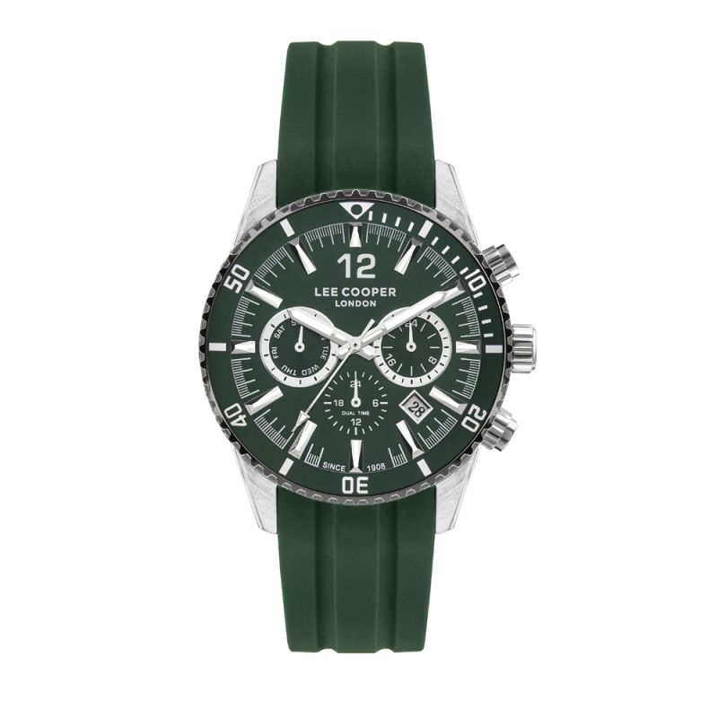 Мъжки часовник Lee Cooper със спортно-ежедневен дизайн. Моделът е с мултифункционален дисплей и минерално стъкло. Корпус от супер метал, съчетан със силиконова каишка. Задвижва се от кварцов механизъм.  Водоустойчивост 5 ATM - допускат се леки пръски и взимане на душ, не се препоръчва обилно мокрене.