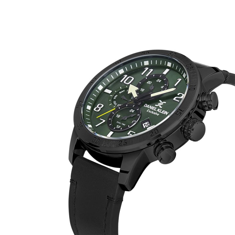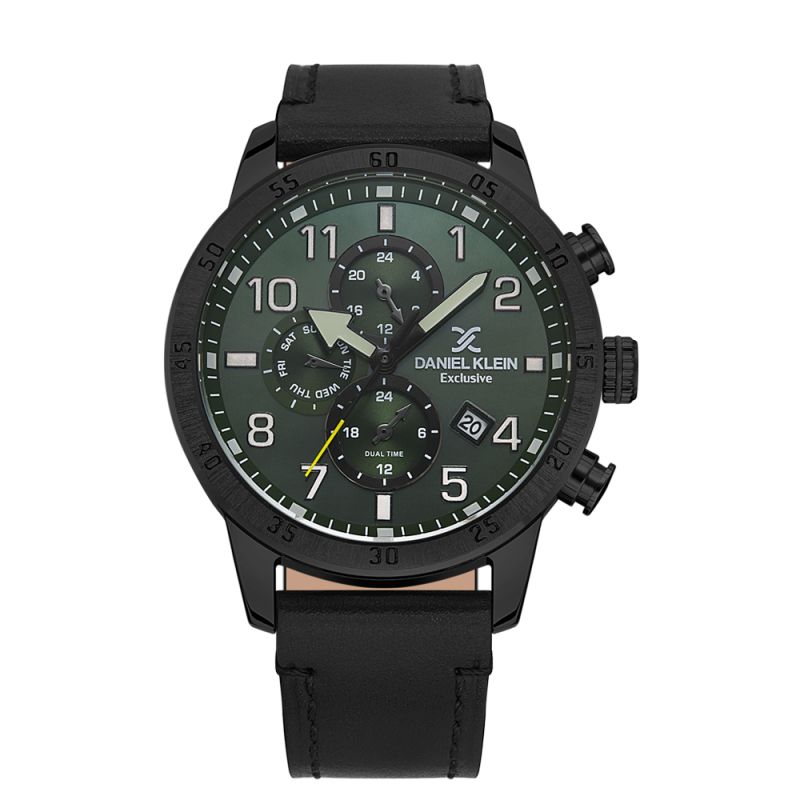 Спортно-елегантен мъжки часовник Daniel Klein от колекцията Exclusive. Мултифункционален дисплей с луминисцентно покритие на стрелките и индексите. Метален корпус в комбинация с каишка от естествена кожа. Минерално стъкло устойчиво към надраскване. Задвижва се от кварцов механизъм. Водоустойчивост 5 ATM - допускат се леки пръски и взимане на душ, не се препоръчва обилно мокрене.