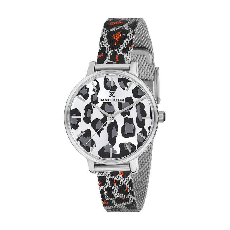 Дамски часовник Daniel Klein с модерна ежедневна визия от колекцията Trendy. Моделът е с леопардов принт на дисплея и верижката. Корпус от висококачествена метална сплав. Стъкло минерал-кристал. Кварцов механизъм. Водоустойчивост 3 ATM - допускат се леки пръски, не се препоръчва обилно мокрене.