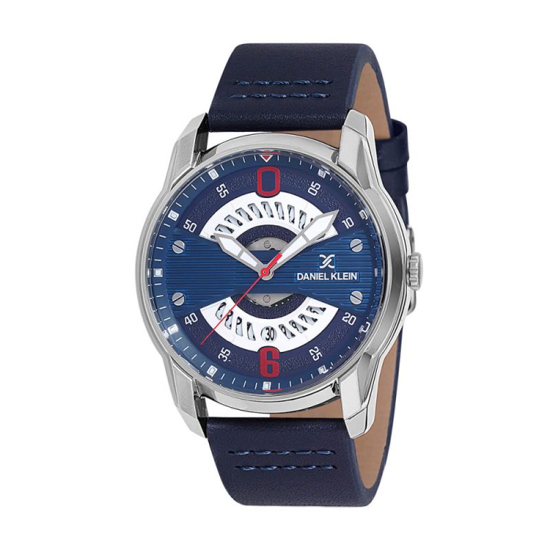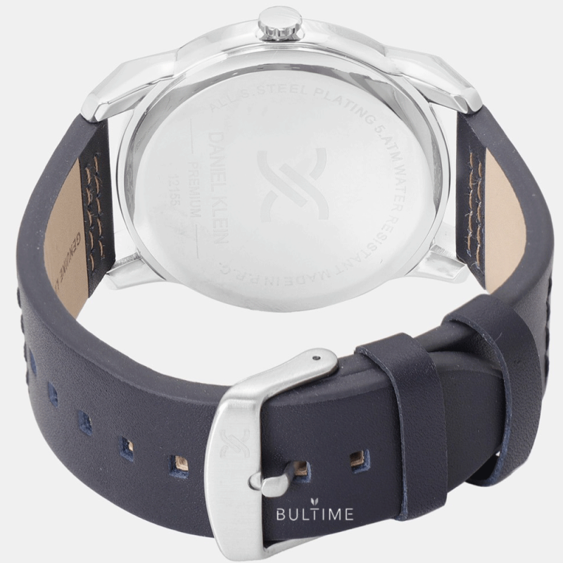 Мъжки часовник Daniel Klein със спортно-елегантен дизайн от колекцията Premium. Аналогов дисплей с интересна визия и показател за дата. Фосфоресциращи стрелки. Стъкло минерал-кристал. Корпус от висококачествена метална сплав. Синя каишка от естествена кожа. Задвижва се от кварцов механизъм. Водоустойчивост 5 ATM - допускат се леки пръски и взимане на душ, не се препоръчва обилно мокрене.