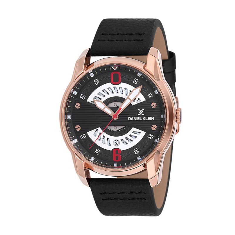 Мъжки часовник Daniel Klein със спортно-елегантен дизайн от колекцията Premium. Аналогов дисплей с интересна визия и показател за дата. Фосфоресциращи стрелки. Стъкло минерал-кристал. Корпус от висококачествена метална сплав. Черна каишка от естествена кожа. Задвижва се от кварцов механизъм. Водоустойчивост 5 ATM - допускат се леки пръски и взимане на душ, не се препоръчва обилно мокрене.
