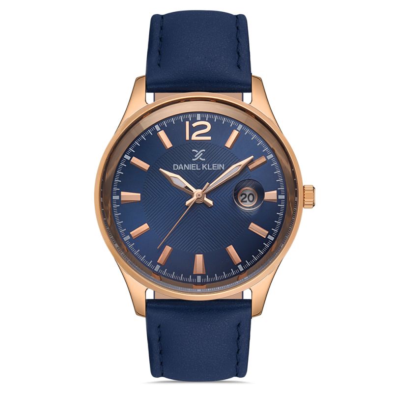 Мъжки часовник Daniel Klein от колекция Premium със синя каишка от естествена кожа. Корпус от метал. Аналогов дисплей с минерално стъкло и показател за дата. Кварцов механизъм. Водоустойчивост 5 ATM - допускат се леки пръски и взимане на душ, не се препоръчва обилно мокрене.