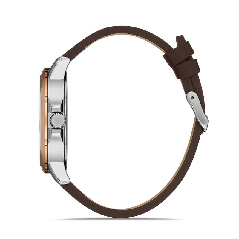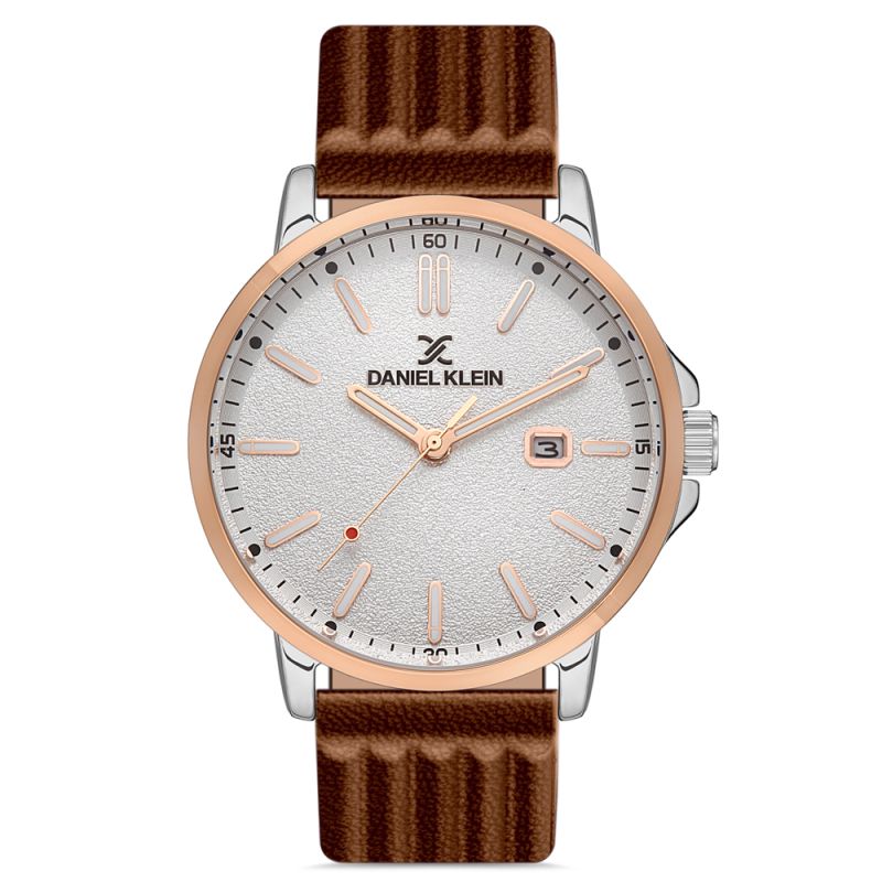 Мъжки часовник Daniel Klein от колекция Premium. Моделът е с метален корпус и кафява кожена каишка. Аналогов дисплей с минерално стъкло и показател за дата. Задвижва се от кварцов механизъм. Водоустойчивост 5 ATM - допускат се леки пръски и взимане на душ, не се препоръчва обилно мокрене.