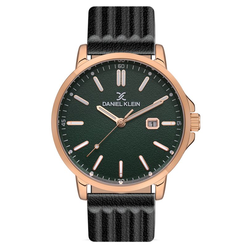 Мъжки часовник Daniel Klein от колекция Premium. Моделът е с метален корпус и каишка от естествена кожа. Аналогов дисплей с минерално стъкло и показател за дата. Задвижва се от кварцов механизъм. Водоустойчивост 5 ATM - допускат се леки пръски и взимане на душ, не се препоръчва обилно мокрене.