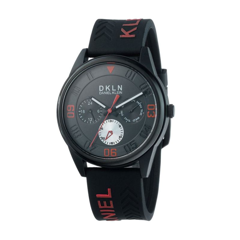 Мъжки часовник Daniel Klein с модерна спортна визия. Моделът е с корпус от полимер и силиконова каишка. Мултифункционален дисплей с показатели за ден, дата и 24 часов формат. Стъкло минерал-кристал. Задвижва се от кварцов механизъм. Водоустойчивост на часовника 3 ATM - допускат се леки пръски, не се препоръчва обилно мокрене.