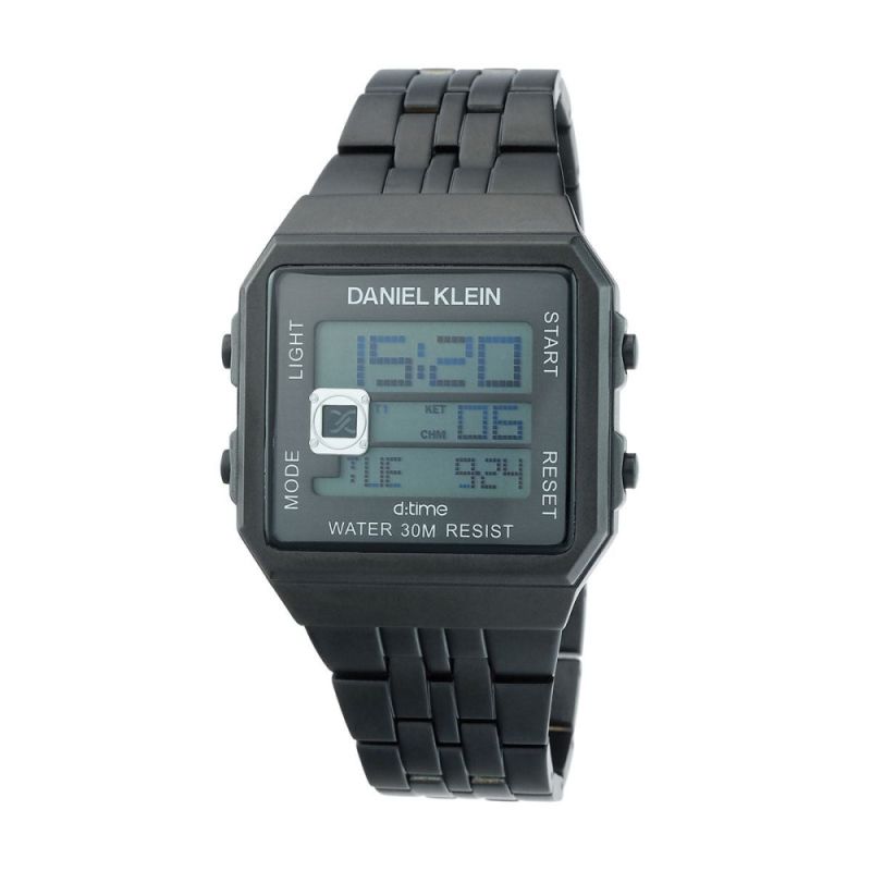 Мъжки часовник Daniel Klein със спортно-ежедневен дизайн от колекцията D Time. Корпус изработен от висококачествена метална сплав, съчетан с верижка неръждаема стомана. Дигитален сив дисплей с черна външна част. Стъкло минерал-кристал. Задвижва се от кварцов механизъм. Водоустойчивост на часовника 3 ATM - допускат се леки пръски, не се препоръчва обилно мокрене.