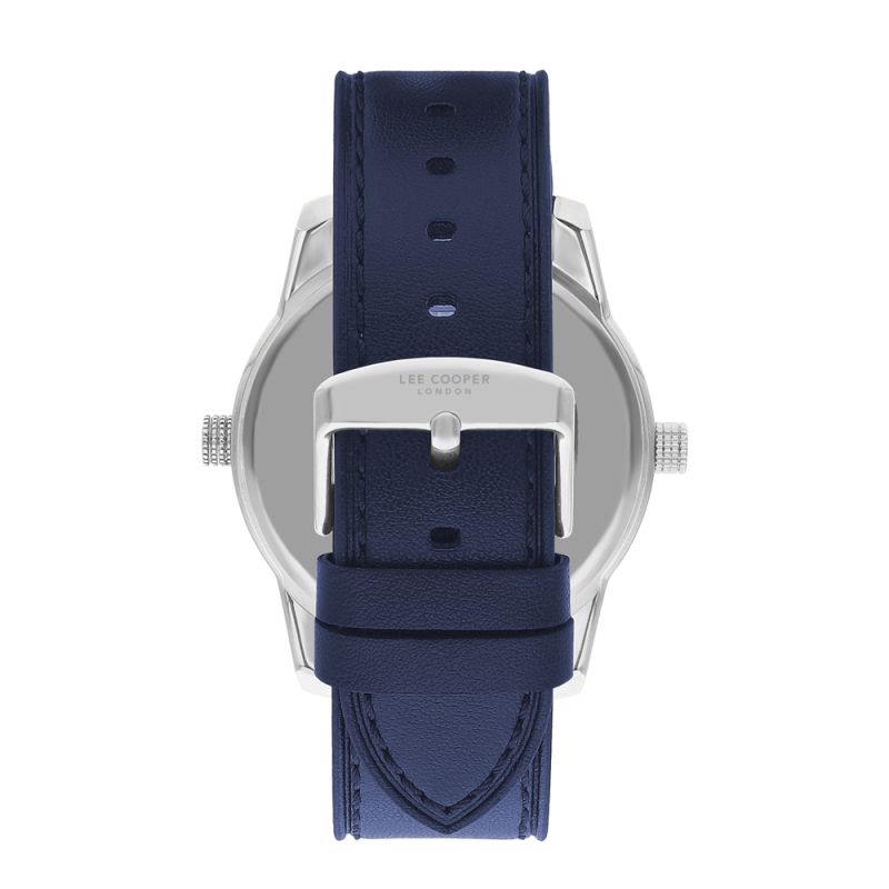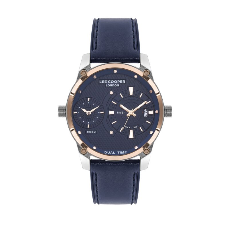 Спортно-елегантен мъжки часовник Lee Cooper с мултифункционален дисплей. Стъкло минерал-кристал. Корпус изработен от супер метал. Каишка от естествена кожа. Задвижва се от кварцов механизъм. Водоустойчивост 5 ATM - допускат се леки пръски и взимане на душ, не се препоръчва обилно мокрене.