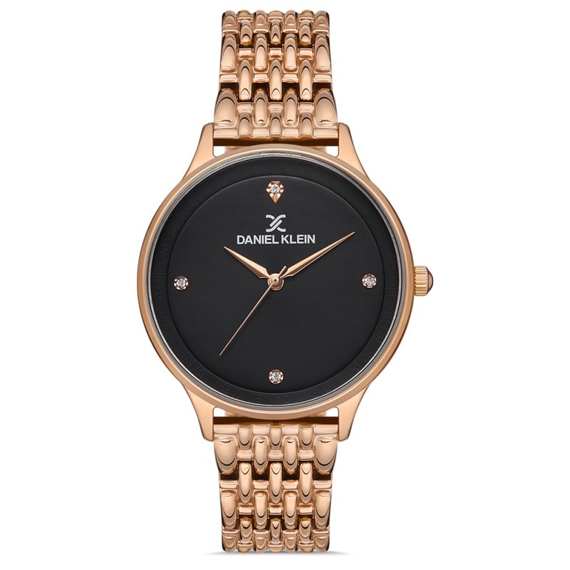Дамски часовник Daniel Klein от колекция Premium. Корпус от метал. Верижка от неръждаема стомана в цвят розово злато. Аналогов дисплей с минерално стъкло. Кварцов механизъм. Водоустойчивост 3 ATM - допускат се леки пръски, не се препоръчва обилно мокрене.