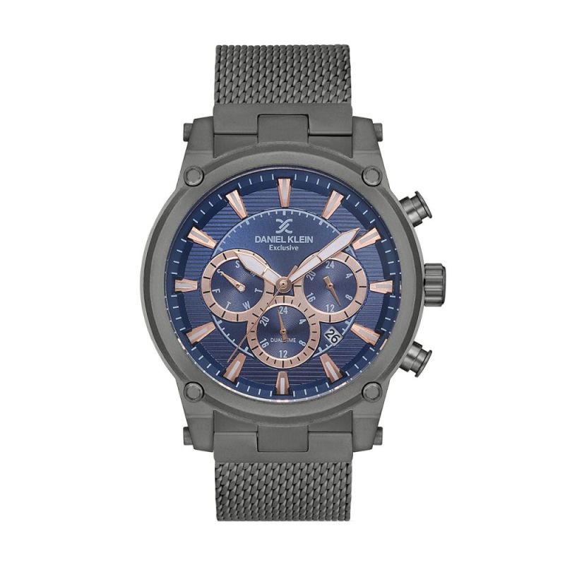Мъжки часовник Daniel Klein с мултифункционален дисплей от колекцията Exclusive. Метален корпус, съчетан с верижка от неръждаема стомана. Стъкло минерал-кристал. Задвижва се от кварцов механизъм. Водоустойчивост 5 ATM - допускат се леки пръски и взимане на душ, не се препоръчва обилно мокрене.