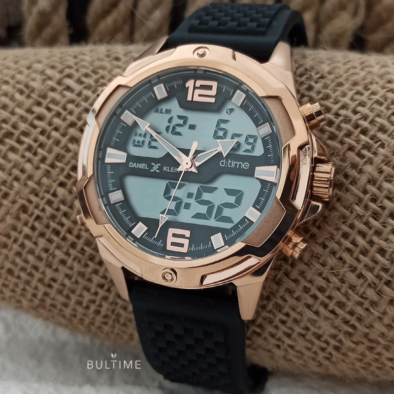 Мъжки часовник Daniel Klein от колекцията D Time. Дисплеят е комбинация от аналогов и дигитален. Стъкло минерал-кристал. Метален корпус, съчетан със силиконова каишка. Задвижва се от кварцов механизъм. Водоустойчивост на часовника 3 ATM - допускат се леки пръски, не се препоръчва обилно мокрене.