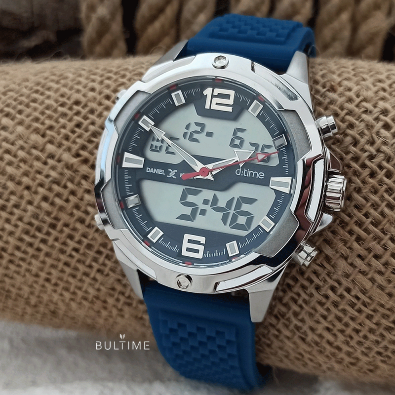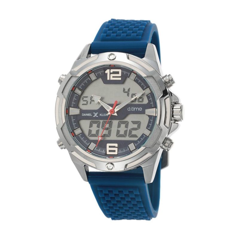Мъжки часовник Daniel Klein от колекцията D Time. Дисплеят е комбинация от аналогов и дигитален. Стъкло минерал-кристал. Метален корпус, съчетан със силиконова каишка. Задвижва се от кварцов механизъм. Водоустойчивост на часовника 3 ATM - допускат се леки пръски, не се препоръчва обилно мокрене.