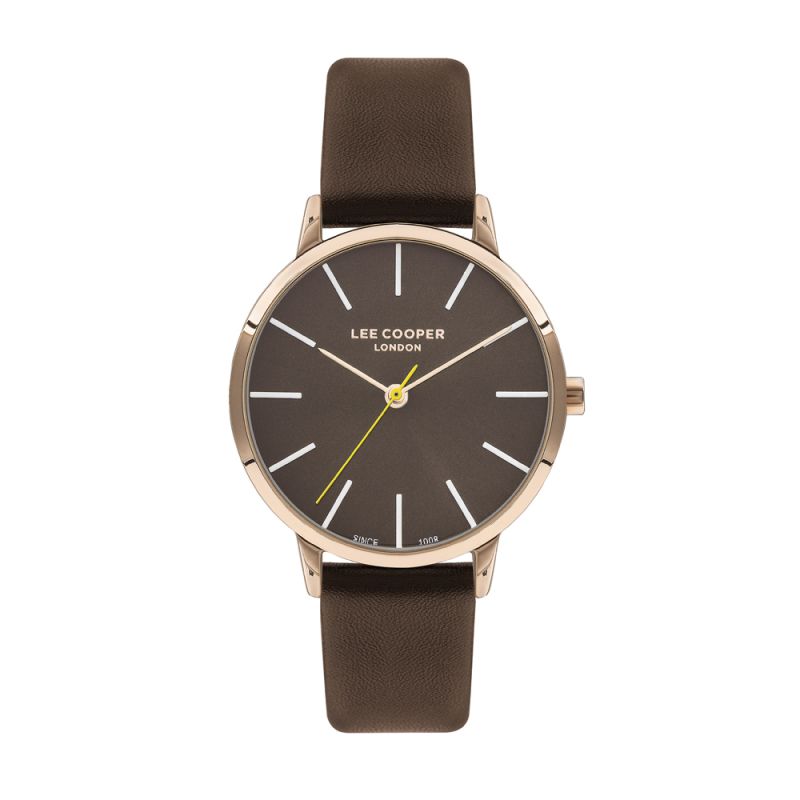 Дамски часовник Lee Cooper с елегантна визия. Тъмнокафяв аналогов дисплей с изчистен дизайн. Стъкло минерал-кристал. Корпус от супер метал. Каишка от естествена кожа. Кварцов механизъм. Водоустойчивост 3 ATM - допускат се леки пръски, не се препоръчва обилно мокрене.