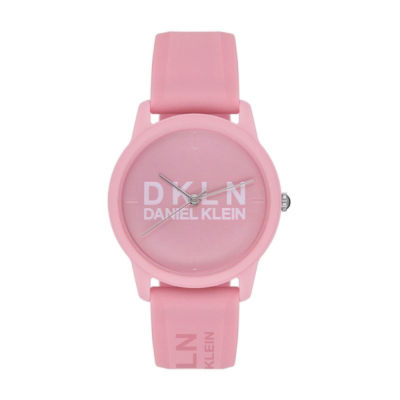Дамски часовник Daniel Klein със спортно-ежедневна визия. Моделът е с корпус от полимер и силиконова каишка. Аналогов дисплей с изчистен дизайн и лого в средата. Стъкло минерал-кристал. Задвижва се от кварцов механизъм. Водоустойчивост 3 ATM - допускат се леки пръски, не се препоръчва обилно мокрене.