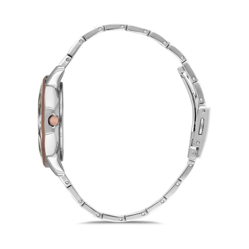 Дамски часовник Daniel Klein от колекцията Premium. Сребрист аналогов дисплей с детайли в цвят розово злато. Стъкло минерал-кристал. Метален корпус, съчетан с верижка от неръждаема стомана. Задвижва се от кварцов механизъм. Водоустойчивост 3 ATM - допускат се леки пръски, не се препоръчва обилно мокрене.