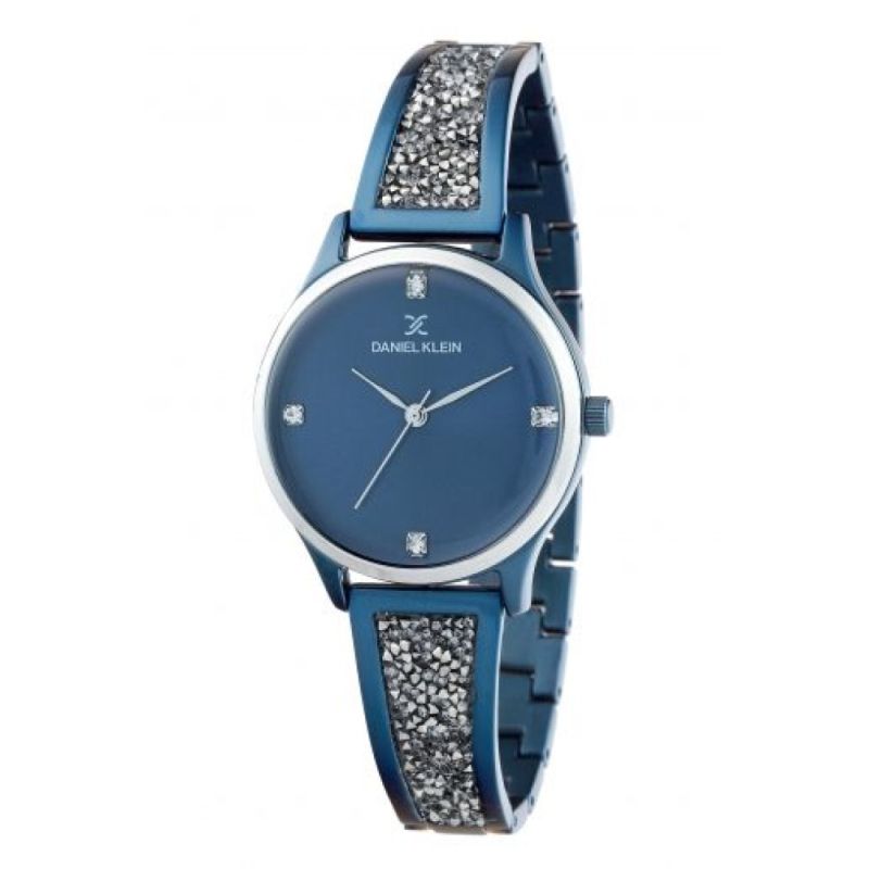 Дамски часовник Daniel Klein от колекцията Premium. Аналогов дисплей с изчистен дизайн и декорация от четири инкрустирани кристала. Стъкло минерал-кристал. Корпус изработен от висококачествена метална сплав. Верижка от неръждаема стомана с бляскави детайли. Часовникът се задвижва от кварцов механизъм. Водоустойчивост 3 ATM - допускат се леки пръски, не се препоръчва обилно мокрене.