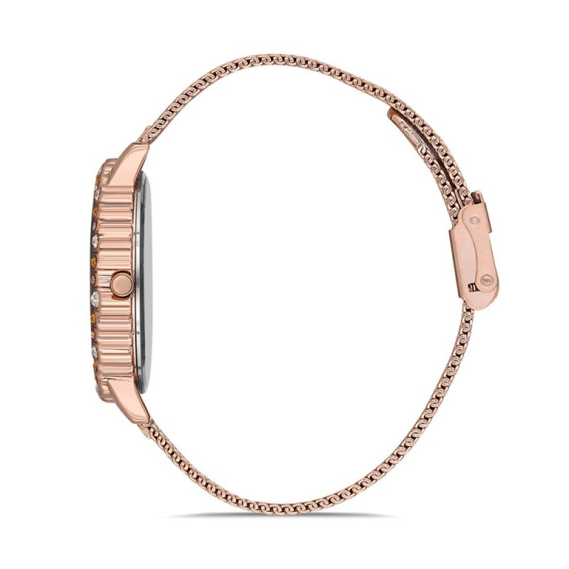 Дамски часовник Daniel Klein с модерен дизайн от колекцията Trendy. Моделът е с кафяв аналогов дисплей и декорация от кристали по ринга. Стъкло минерал-кристал. Метален корпус, съчетан с верижка от неръждаема стомана. Кварцов механизъм. Водоустойчивост 3 ATM - допускат се леки пръски, не се препоръчва обилно мокрене.