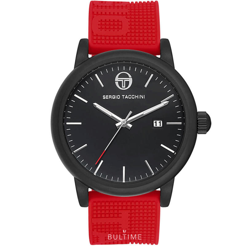 Мъжки часовник Sergio Tacchini от колекцията City. Моделът е с корпус от неръждаема стомана и силиконова каишка. Аналогов дисплей с показатели за дата. Стъкло минерал-кристал. Задвижва се от кварцов механизъм. Водоустойчивост 5 ATM - допускат се леки пръски и взимане на душ, не се препоръчва обилно мокрене.