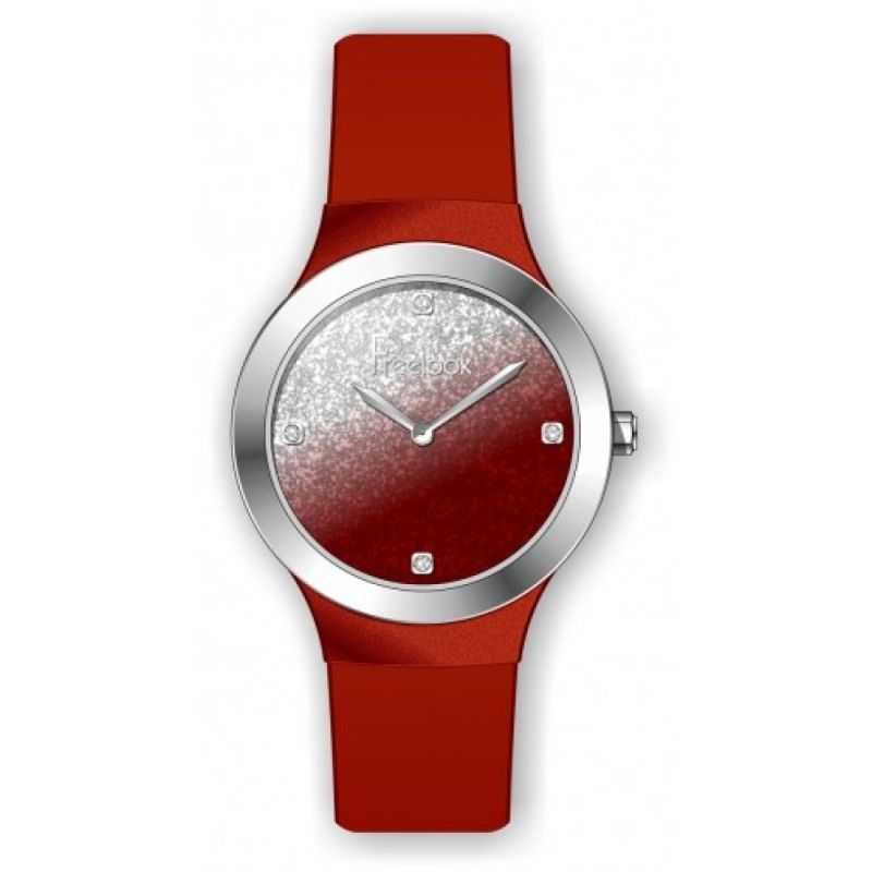 Дамски часовник Freelook от колекцията Eiffel с модерна и интересна визия. Корпусът е изработен от висококачествен полимер и е с минерално стъкло. Силиконова каишка. Циферблат с бляскава преливаща основа в сребрист и червен цвят и декорация от инкрустирани кристали. Кварцов механизъм.