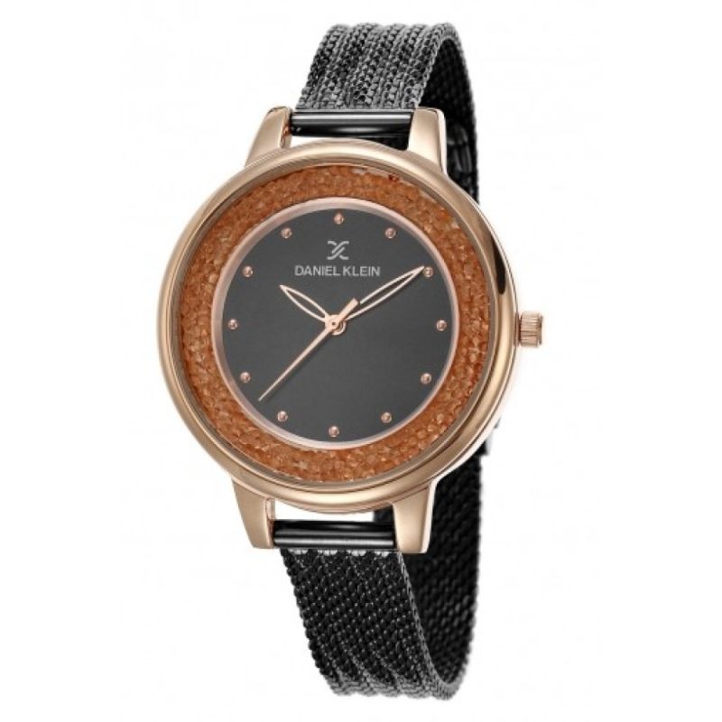 Дамски часовник Daniel Klein с модерна и интересна визия от колекцията Premium. Аналогов дисплей, обграден от бляскави детайли. Стъкло минерал-кристал. Корпус изработен от висококачествена метална сплав. Верижка от неръждаема стомана. Кварцов механизъм. Водоустойчивост 3 ATM - допускат се леки пръски, не се препоръчва обилно мокрене.
