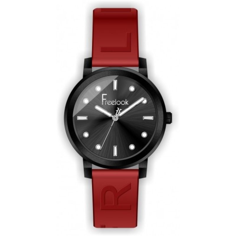 Дамски часовник Freelook от колекцията Eiffel. Моделът е с метален корпус и има минерално стъкло. Червена силиконова каишка с принт логото на марката. Аналогов дисплей. Кварцов механизъм. Водоустойчивост 5 ATM - допускат се леки пръски и взимане на душ, не се препоръчва обилно мокрене.