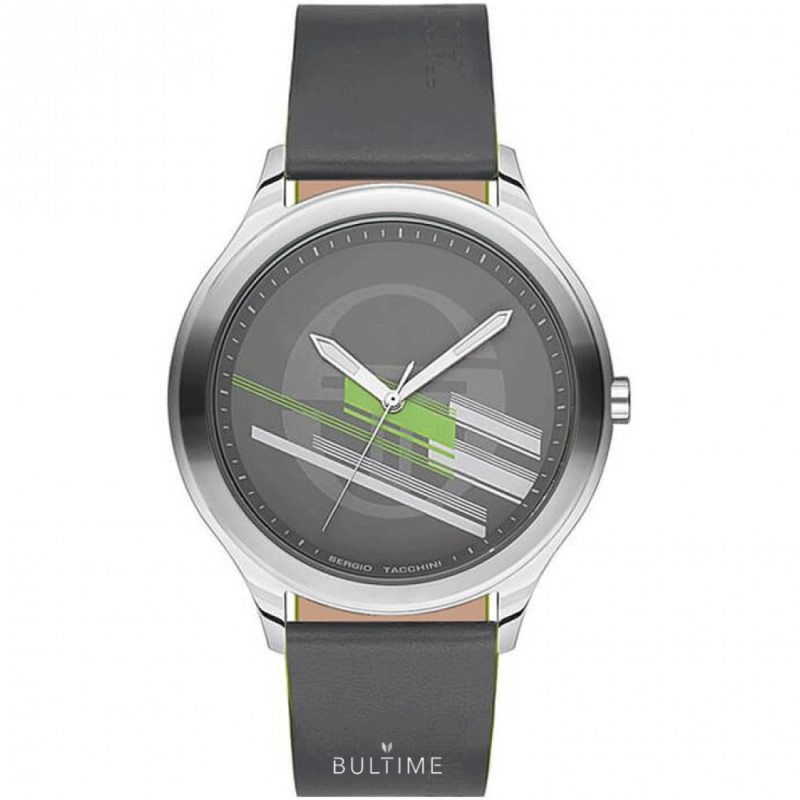 Спортно-елегантен мъжки часовник Sergio Tacchini от колекцията City. Моделът е с аналогов дисплей с графичен принт. Стъкло минерал-кристал. Корпус от неръждаема стомана. Каишка от естествена кожа. Кварцов механизъм. Водоустойчивост 5 ATM - допускат се леки пръски и взимане на душ, не се препоръчва обилно мокрене.