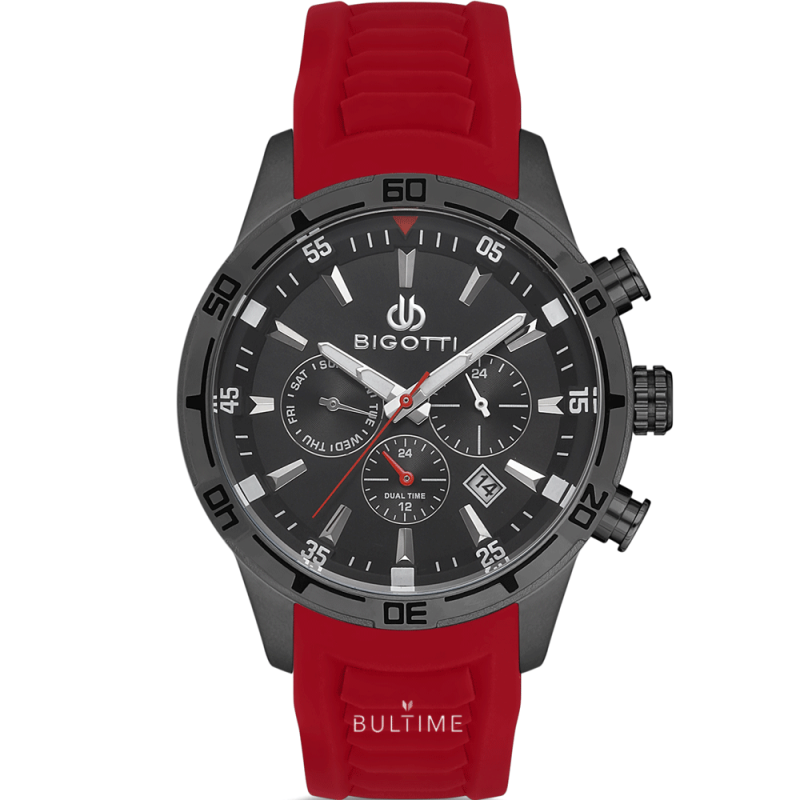 Мъжки часовник Bigotti с метален копрус. Червена силиконова каишка. Аналогов