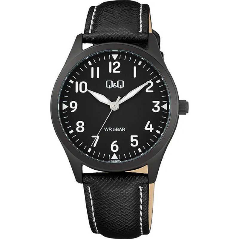 Мъжки часовник Q&Q Q76B-003PY с Кожена каишка/верижка и Кварцов механизъм