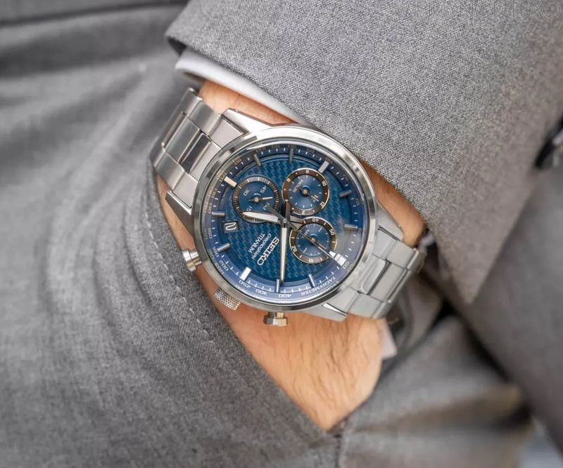 Часовник Seiko SSB387P1 от колекция Sport Chrono се предлага в Chronodeluxo.bg с брандирана кутия на марката, гаранция, бърза доставка в рамките на 1-2 работни дни. Мъжки часовник в спортен стил, който се задвижва от кварцов механзъм Caliber 8Т67 – част от колекцията Sport Chrono. Изработен от титан и специално стъкло Hardlex – синтетичен минерал-кристал, който се използва само от Seiko и е изключително здрав и устойчив на надраскване. Разполага с тъмносин текстуриран дисплей хронограф. Размери 49.1 х 41.6 х 14.2 мм, тегло 89 гр. Водоустойчивост 10 АТМ. Характеристики: Производител: Seiko Референтен номер: SSB387P1 Колекция: Sport Chrono Подходящ за: Мъже Гаранция: 3 години Механизъм: Кварц Стъкло: Минерал-кристал Водоустойчивост: 10 ATM Материал на корпус: Титан Диаметър/Размер на корпус (мм): 42 Форма: Кръгъл Дисплей: Хронограф Материал на верижка/каишка: Титан Дата: Да Цвят на циферблата: Син Цвят на верижка/каишка: Сив